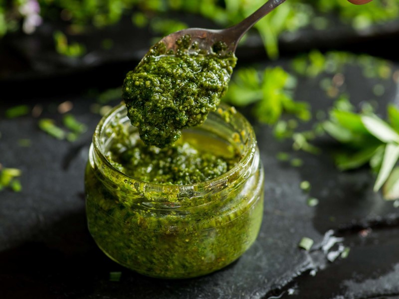 Neue Anbaumethoden: Für die Herstellung von Pestos nutzen wir bei Hügli Basilikumpflanzen aus vertikalem Anbau, die unsere Partner aus Schönheitsgründen nicht an den Handel verkaufen können und die ansonsten im Müll landen würden.